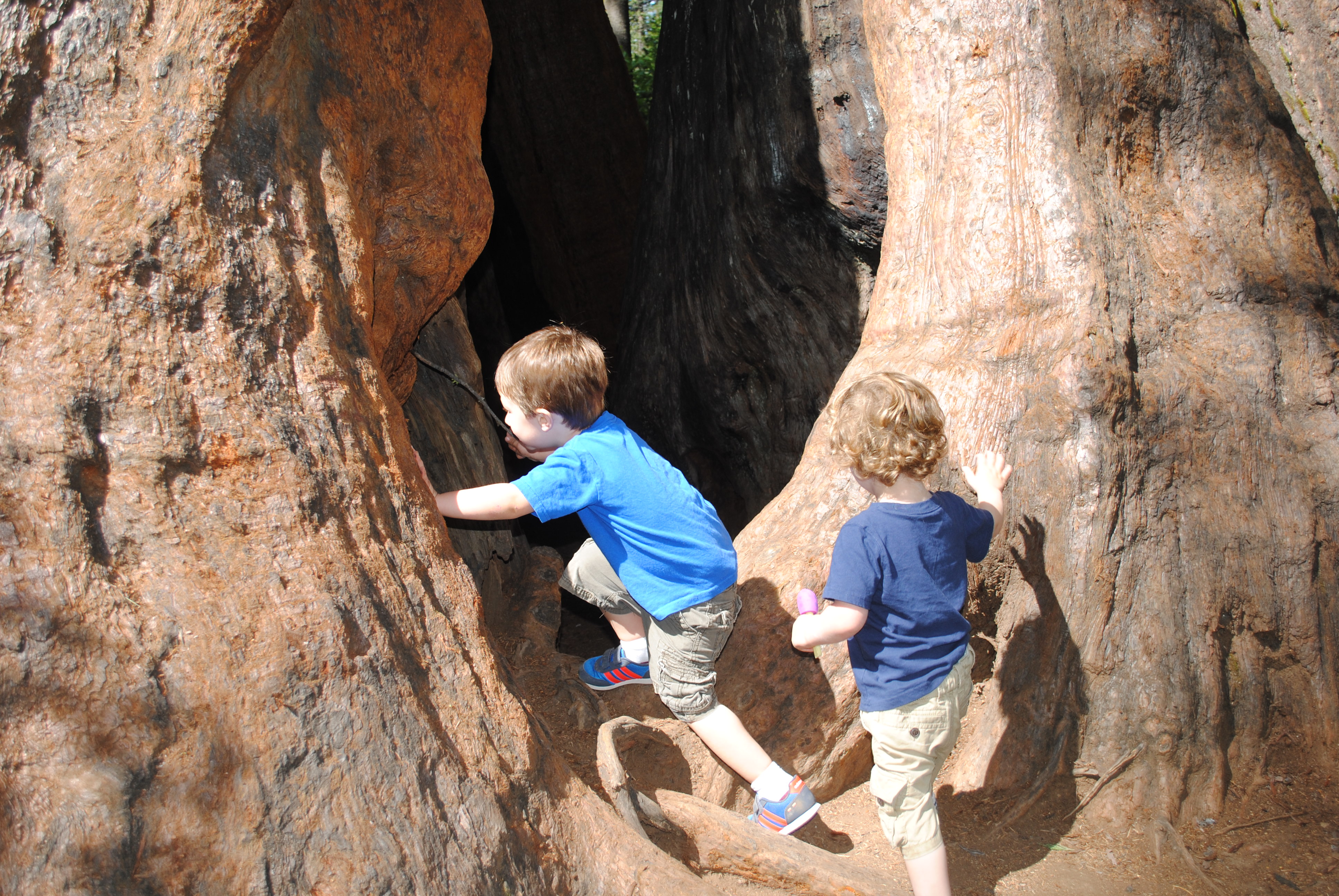 Calaveras Big Trees State Park (our first stop) with sequoias so tall, it was like standing among giants. We had to step back straining our necks to see their leafy heads of hair. Luckily these Goliaths were gentle.